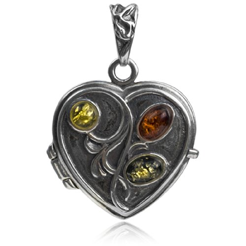 Best Seller! Baltic Multicolor Amber and Sterling Silver Heart-Shaped Locket Pendant Review