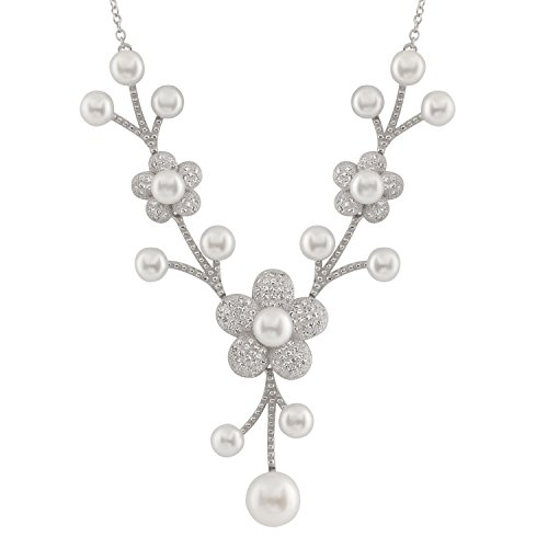 Best Seller! Bella Pearls Freshwater Pearl and Cubic Zirconia Flower Sterling Silver Necklace of Length 50 cm Review