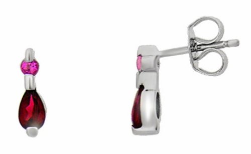 The vibrant colours of these gems are just lovely! Each earring features a raspberry pink, pear cut Rhodalite gem (5x3mm) and a radiant pink, round cut, faceted pink tourmaline stone simply set in white gold.Small, yet perfect, these beautiful earrings will add a touch of magic to your look!