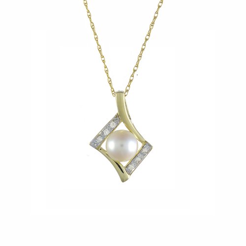 Best Seller! Ivy Gems 9ct Yellow Gold Diamond and Pearl Pendant with 46cm Prince of Wales Chain Review