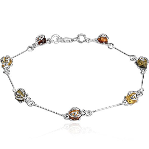 Best Seller! Multicolor Amber Sterling Silver Ladybug Bracelet 19cm Review