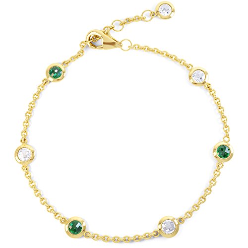Approx. 2.5ct total carat weight 4mm created Emerald and White Sapphire Adjustable length up to 7.5" 18K Gold finished Sterling Silver Stamped 925If you want to buy Sapphire by the Yard Bracelet 18K gold Vermeil with Emerald safely and comfortably please click on the button below: