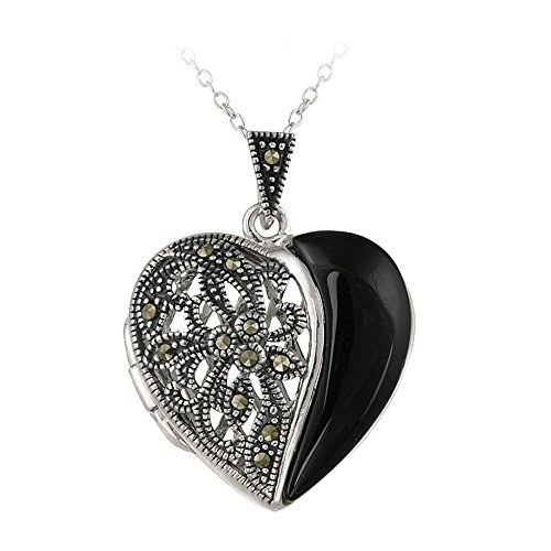 Best Seller! Sterling Silver Marcasite and Onyx Heart Picture Locket Necklace Review